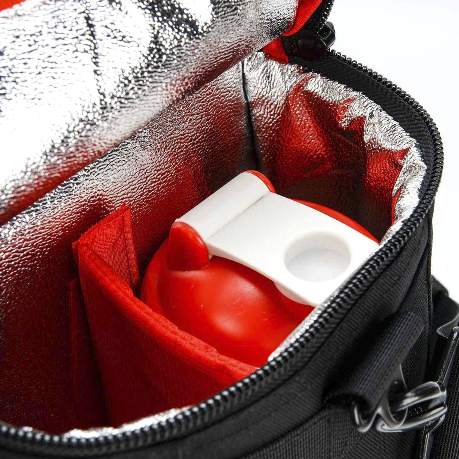The Duffle Bag will fit up to 2 bottles/shakers in cooled comfort. (Drink bottles not included)