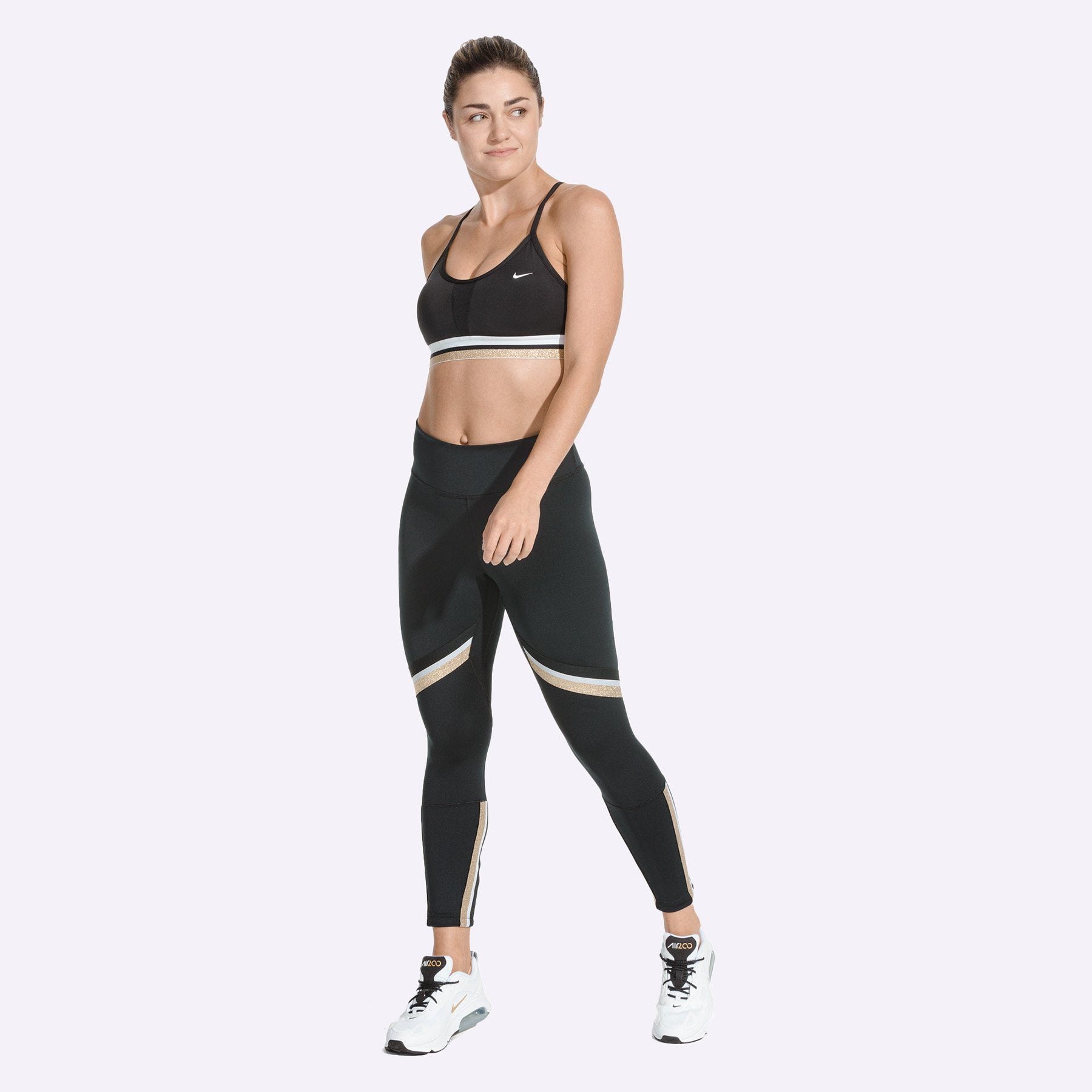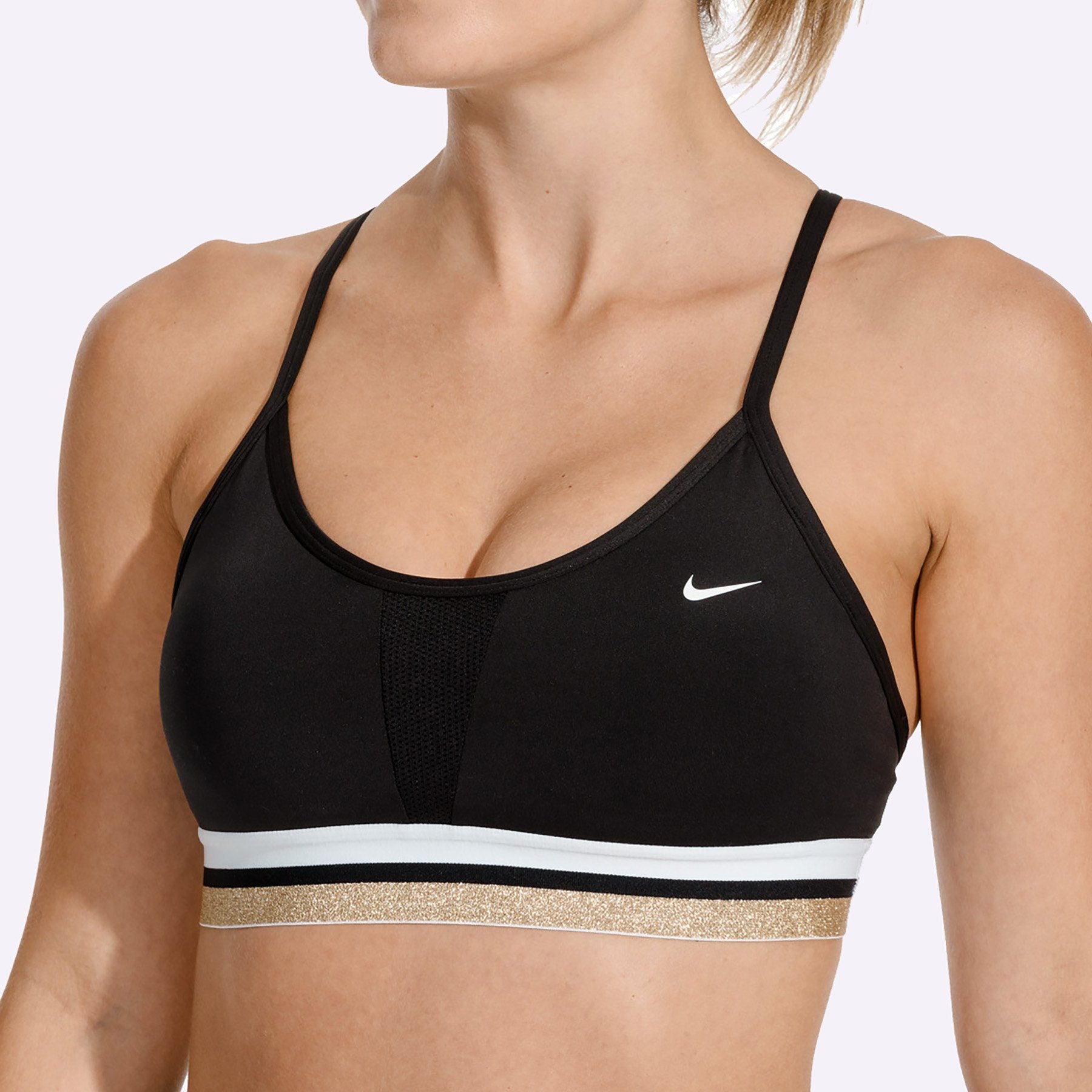 Nike Indy Women's Light-Support Sports Bra - BLACK/WHITE/METALLIC GOLD/WHITE